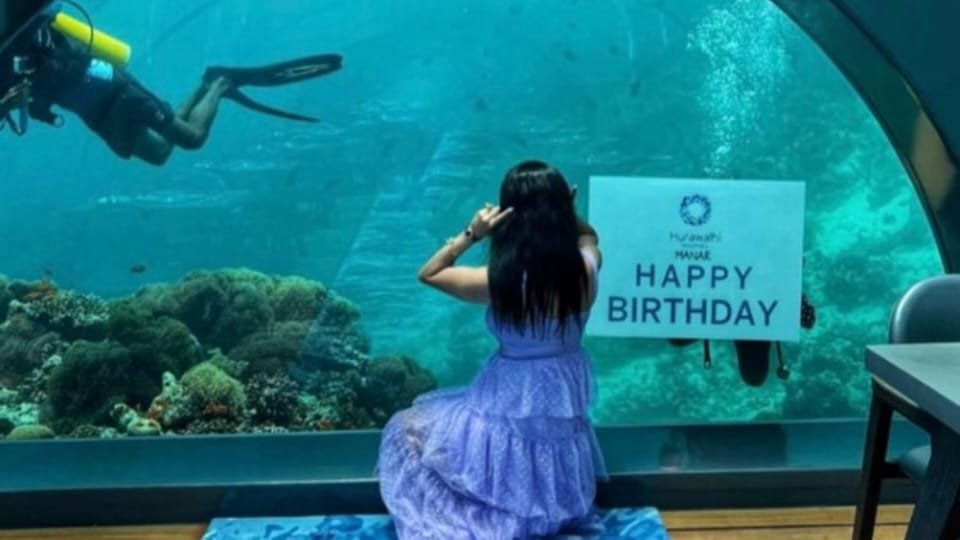 الفنانة منار تحتفل بعيد ميلادها تحت الماء…